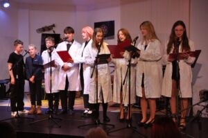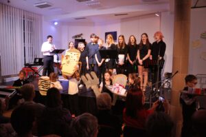 Přes sto žáků naší školy ve středu a ve čtvrtek vystoupilo v rámci podzimního projektu Umění na talíři a zvládlo tak kulturně „občerstvit“ téměř 600 diváků, protože kromě odpoledních vystoupení pro veřejnost proběhlo i vystoupení dopolední, pro žáky 5. tříd základních škol a primu ašského gymnázia. Jako každý rok se toto neuvěřitelné množství dětí a dospělých (žáků a učitelů) zvládlo domluvit, připravit, naučit se, natrénovat, spolupracovat, což je pro nás, coby vedení školy, neuvěřitelně potěšitelné. Společně se na tomto tématu pracovalo od září, a to napříč obory (hudebním, výtvarném, tanečním, literárně dramatickém). Všem vystupujícím a také všem pedagogům za jejich práci a nasazení, ale i za to, jakým způsobem se tolerují a podporují nejen při chystání projektu, ale i při vystoupení samotném, velmi děkujeme. Poprvé s námi také vystoupilo osm maminek žáků literárně dramatického oboru a byly také skvělé, děkujeme:). A veliké díky patří i našim oblíbeným technikům – Davidu Žibrickému a Luboši Kolářovi, bez kterých si projekt ani nedokážeme představit. Už se těšíme na další rok, ale také se s radostným očekáváním vyhlížíme Vánoční koncert, který v našem sále proběhne v magické datum 12.12. Rádi Vás u nás zase uvítáme.