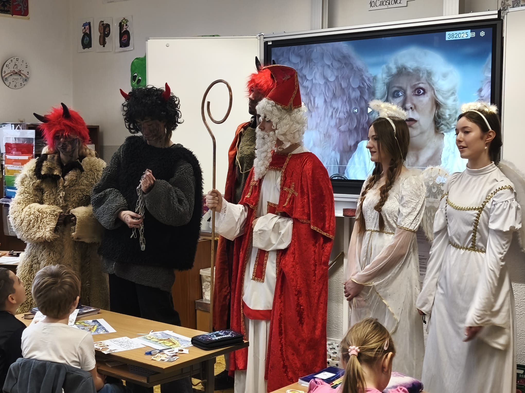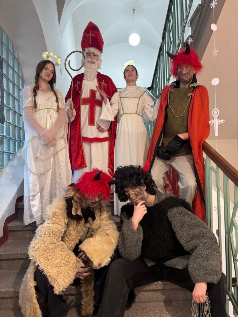 Andělé a čerti, za mikulášského dohledu, navštívili minulý týden ašské školy a školky a potěšili (poděsili) místní malé i větší žactvo. Všechny tyto postavy se ve správný čas na zemi zhmotnily prostřednictvím členů zuškového divadelního souboru Dramafie, v podobě andělů pak i v „nebíčku“ v Krásné. I díky nim se tak daří udržování tradičních mikulášských obchůzek:).