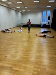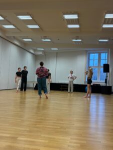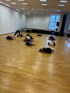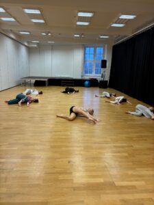 Během workshopu jsme se zaměřily na podporu anatomicky správného držení těla a práci s těžištěm ve stoji, chůzi i pohybových vazbách. Důraz byl kladen na vědomou práci s prostorem, aktivní reakci na hudbu a citlivé naladění na skupinu.
